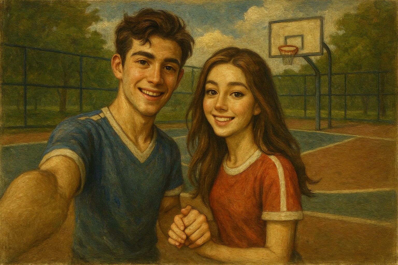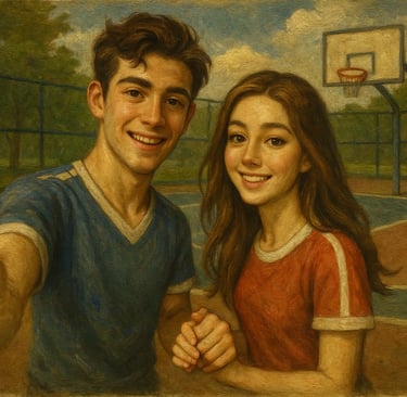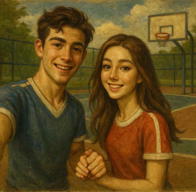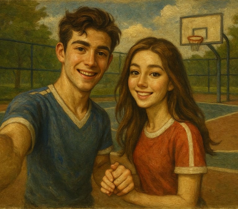 Setelah beberapa putaran jogging, mereka duduk di bangku taman. Nafas Rayyan berat, kaos lusuhnya basah oleh keringat. Falisha membuka ponsel seri terbarunya, memilih filter, lalu mengunggah foto mereka. Tak butuh waktu lama, notifikasi berdatangan: “Couple goals banget!”, “Kompak abis!”, “Gemesin banget sih kalian.”