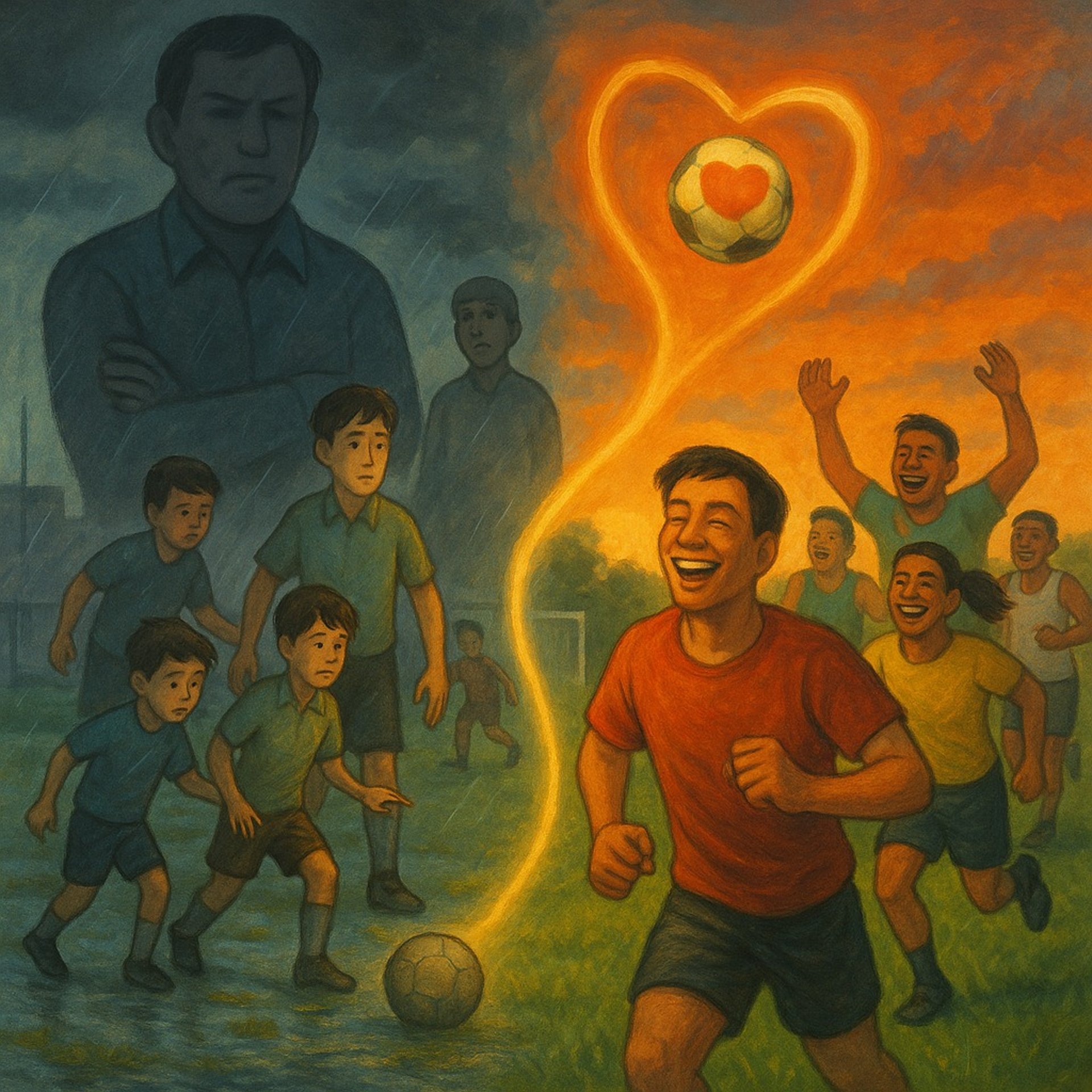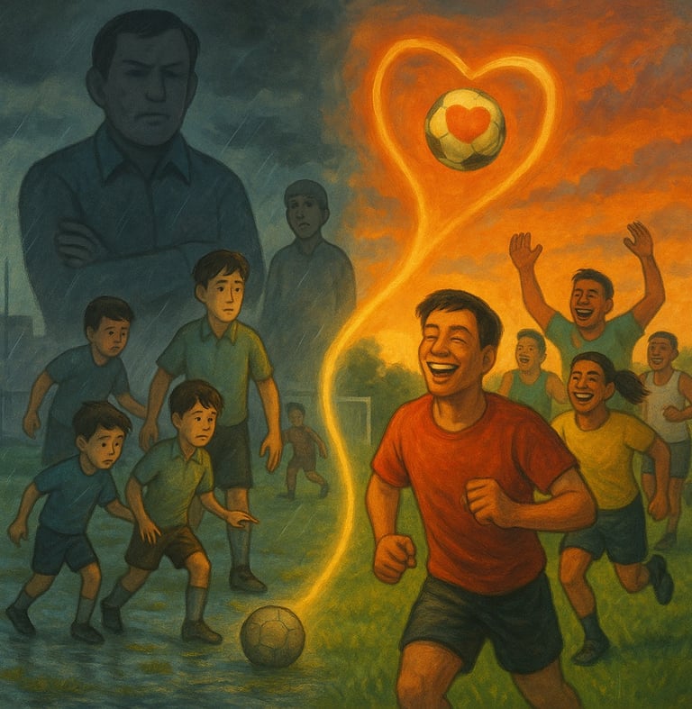 Sore itu, langit kota masih menyisakan aroma hujan, sangat khas, aroma yang mudah memicu ingatan akan masa kecil, hujan pertama, atau suasana kampung halaman. Lapangan sepak bola yang biasa dipakai latihan klub daerah tampak becek di beberapa titik, rumputnya basah dan tak rata. Bau tanah bercampur dengan keringat anak-anak yang tengah berlari kecil di atasnya. Dari pengeras suara terdengar nama-nama dipanggil, satu per satu, sementara orang tua berdesakan di pinggir lapangan, wajah mereka penuh harap sekaligus cemas. Mungkin lebih tepatnya wajah ambisius.
