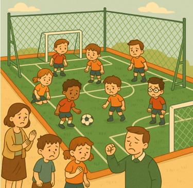 Guru olahraga yang juga merangkap sebagai pelatih-nya yang saya kira akan menjadi benteng terakhir pendidikan jasmani, justru tampak paling semangat. "Ini bentuk pembelajaran kontekstual, sesuai materi PPG dan Guru penggerak kemaren di hotel" ujarnya. "Mereka belajar langsung lewat kompetisi." “Uhuiiiiii,,,” pekik saya pelan bgt dalam hati. Saya ingin bertanya, apakah kompetisi setiap pekan itu masih "pembelajaran", atau sudah menjadi bentuk eksploitasi terselubung dalam nama edukasi?