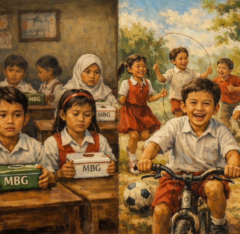 Ketika pemerintah meluncurkan Program Makan Bergizi Gratis (MBG), niatnya mulia: memastikan setiap anak Indonesia mendapatkan makanan yang sehat dan bergizi di sekolah, sebagai bagian dari upaya menurunkan stunting dan mengatasi masalah gizi secara luas. Program ini bahkan diperluas pada 2025 dengan target menjangkau puluhan juta anak di seluruh negeri . Namun, perjalanan program ini juga membuka ruang refleksi yang lebih dalam tentang apa yang sebenarnya dibutuhkan anak bangsa, bukan hanya makanan, tetapi aktivitas fisik yang cukup agar tubuh dan jiwa mereka tumbuh optimal.