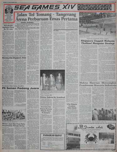Saat itu saya sadar, di tengah derasnya arus digitalisasi dan kemudahan akses informasi masa kini, masih ada banyak arsip koran yang belum terdigitalisasi. Saya ngobrol banyak dengan Joni, karena saya pernah mengajar mata kuliah Sejarah Olahraga di Prodi Sejarah dan Prodi Pendidikan Kepelatihan Olahraga Universitas Negeri Malang. Lalu saya bertanya ke Joni, “kenapa tertarik topik SEA Games?”. “Ya..., karena sumbernya banyak pak di sini”, jawabnya sambil tersenyum polos. Dari situ saya jadi sadar ternyata memang dalam koran-koran terbitan 1970an atau masa Orde Baru, mayoritas ada rubrik “Olah Raga” atau “Olahraga”. Nah ini kan harta karun bagi kami yang dari Jurusan Sejarah. Bahkan bisa menjadi sumber penting juga bagi teman-teman dari Fakultas Ilmu Keolahragaan, asalkan tugas akhir mereka juga ada yang mention sejarah keolahragaan di Indonesia.