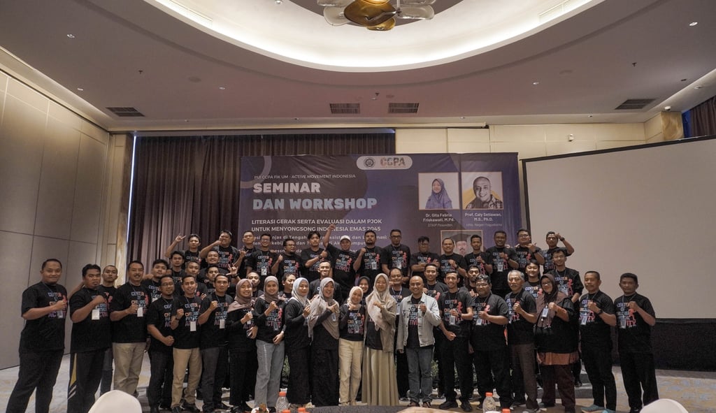 Malang Dalam rangka mendukung visi Indonesia Emas 2045, PUI-CCPA (center of Children Physical Activity) FIK UM menyelenggarakan kegiatan FGD, Seminar dan Workshop Nasional bertajuk “Literasi Gerak serta Evaluasi dalam PJOK untuk Menyongsong Indonesia Emas 2045”. Acara ini dibagi menjadi dua hari pada hari Rabu-Kamis, 14-15 Mei 2025. Hari pertama di lakukan Focus Group Discussion (FGD) bertempat di Gedung C6 FIK UM bersama PUI-CCPA FIK UM yang berkolaborasi dengan Yayasan Active Movement Indonesia, dan Seminar Workshop yang bertempat di Hotel Atria Malang yang diikuti oleh Guru-guru PJOK Malang Raya dari jenjang SD-SMA.