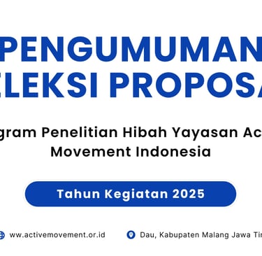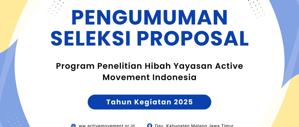 Yayasan Active Movement Indonesia membuka Seleksi Penerimaan Hibah Penelitian Tahun 2025 bagi peneliti yang berminat mengajukan proposal riset yang inovatif dan berdampak.