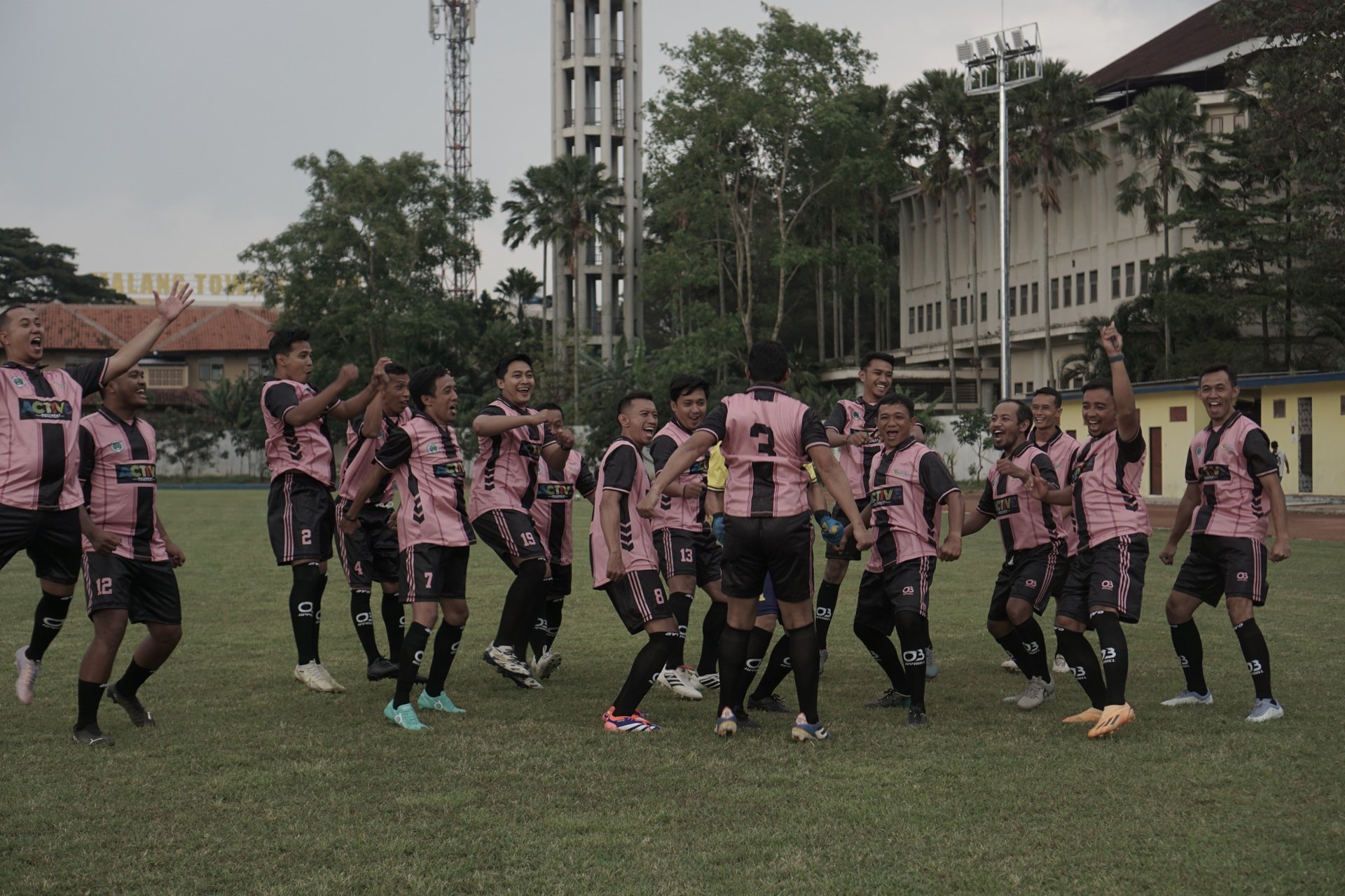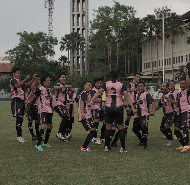 olahraga Indonesia. Bersama rekan-rekan guru olahraga, kami bermain "fun football" berjuluk atau sengaja dikasih nama "Oemar Bakri". Fun football menurut saya merupakan istilah yang agak ironis, mengingat "sebagian dari kami" pulang dengan lutut nyeri dan ego yang remuk karena gagal cetak gol atau kalah lawan komunitas yang lebih uzur. Tapi di sanalah, di tengah keringat, umpatan kecil, gojlokan pemain cadangan dan bola yang entah kenapa selalu lebih akrab dengan mistar daripada jaring, saya merasa paling dekat dengan Albert Camus, tentunya pandangan dan filosofinya.
