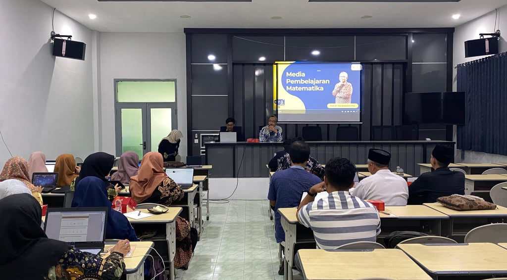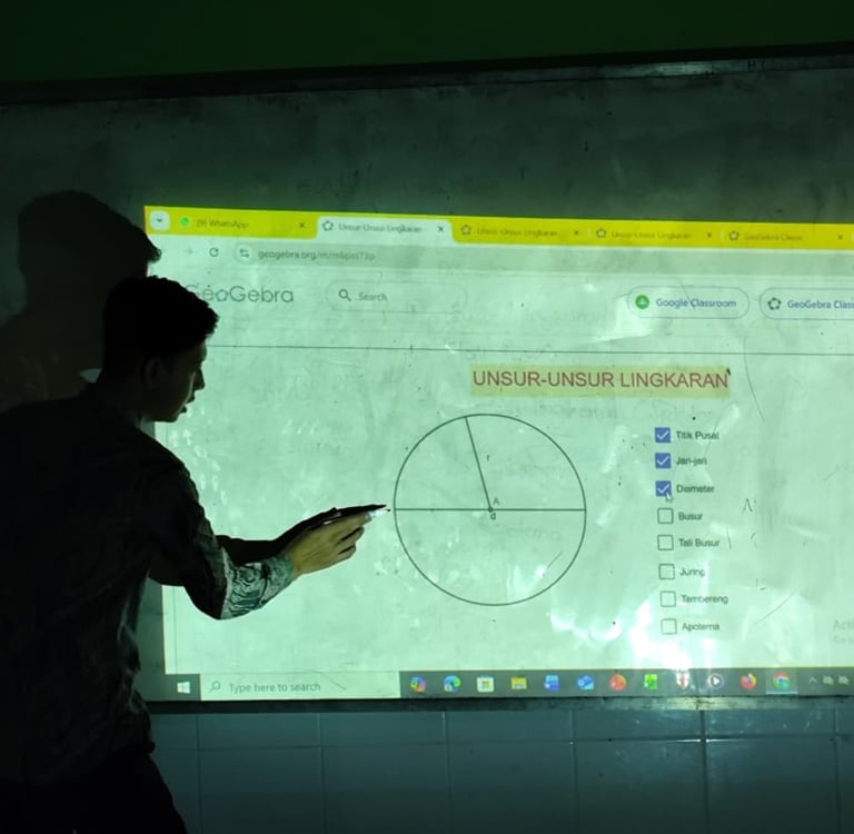 Upaya untuk meningkatkan pemahaman dan keterampilan guru matematika dalam pemanfaatan media pembelajaran dilakukan oleh dosen dan mahasiswa Departemen Matematika, Universitas Negeri Malang melalui penyelenggaraan Workshop Media Pembelajaran Berbasis GeoGebra pada 31 Oktober sampai 14 November 2025 di MTs Negeri 2 Malang. Kegiatan ini menjadi salah satu langkah strategis untuk memperkuat kapasitas pendidikan sekaligus mendukung terwujudnya Sustainable Development Goals (SDGs) nomor 4: Pendidikan Berkualitas.